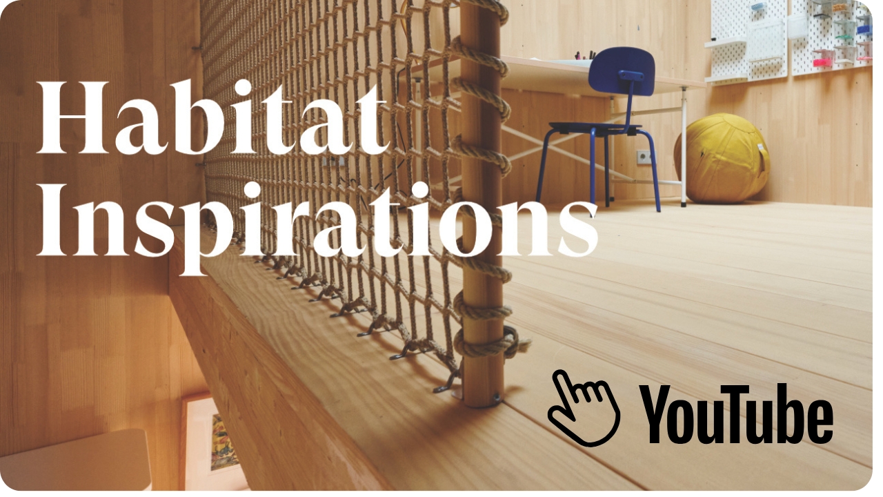 Die HIRAM Habitat Massivholzdielen aus heimischer Weißtanne schaffen eine sichere Umgebung, in der die Kinder sorgenfrei schlafen und spielen können. Lehmputzwände ergänzen das gesunde Raumklima und vervollständigen das Konzept des unbehandelten Wohnens.