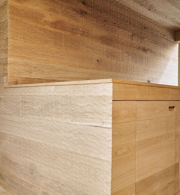 Le traitement avec des huiles dures naturelles confère aux panneaux une légèreté grâce à des teintes délicates ou crée une finition élégante avec des nuances plus foncées. L’huile forme une couche protectrice et respirante sur le bois. La surface mate, séchée de manière oxydative, garantit un aspect naturel tout en rendant les panneaux résistants et durables.